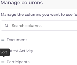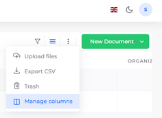 To do so, click on the three-dotted menu to the left of the New Document button and select Manage Columns.