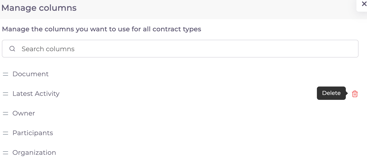 Here, you can choose to hide columns you don’t want to be visible by clicking the trash can icon next to the title, or drag and drop them to change the order.