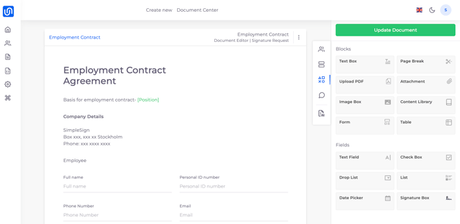 Click New Document in the top right corner and select how you would like to create the signature request.