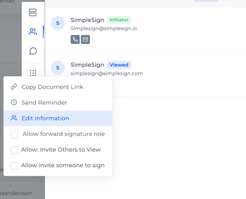 Under Participants, you can change the recipient’s email for a sent document and access their individual document link if they’re experiencing issues with their invitation method.