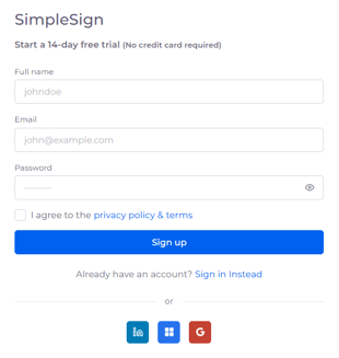 Once registered, you can start using Simple Sign immediately for a 14-day free trial.